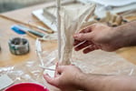 Vous choisirez et dessinerez une forme simple à partir d’images d’inspiration de Jean Arp, Juan Miro… Autour d’une base de pied existante, vous formerez la structure de votre pied avec du fil de fer. Ensuite, vous apprendrez à recouvrir cette base de bandes de plâtre. Vous modèlerez cette forme avec du plâtre et donnerez vie au volume. Vous râperez et poncerez le plâtre, votre sculpture prendra formes petit à petit. Vous repartirez avec un pied unique laissé brut, véritable sculpture pour votre salon.